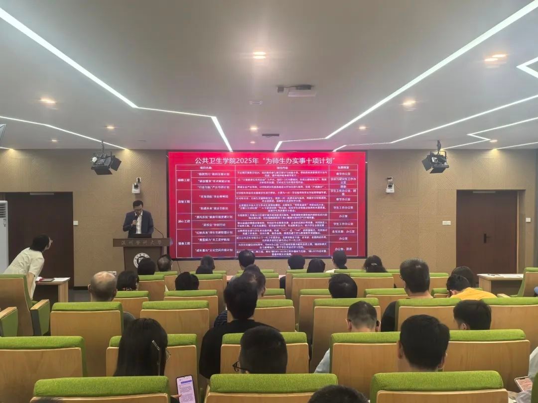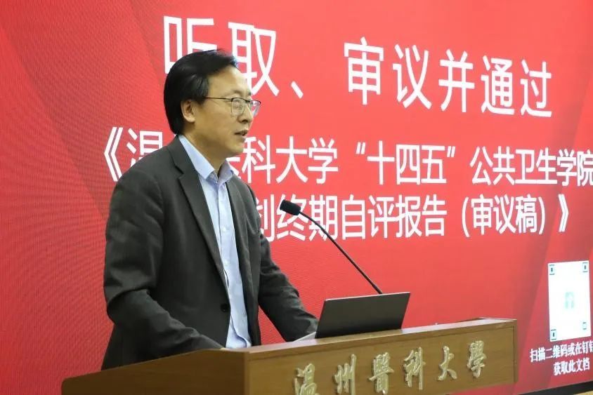 学院院长刘晓冬作“十四五”发展规划终期自评报告。他指出,学院“十四五”期间紧紧围绕高质量发展主题,在人才培养体系构建、学科建设水平提升、科研创新能力突破、师资队伍结构优化、国际交流合作深化等方面取得的阶段性成果。他强调,学院要深入分析“十四五”规划期间面临的挑战,全面做好“十五五”规划筹谋工作:一创新落实立德树人根本任务,构建“思想引领+学风培育+就业服务+实践创新”四位一体育人体系,依托双创平台和校企协同强化学生发展。二深化推进人才培养改革,推进“AI+教育”深度融合,建设虚拟仿真课程与智慧教育空间,强化学科动态调整和产教融合基地。三加速建设特色学院、优势学科,聚焦公共卫生与预防医学一级学科博士学位授权点创建工程,实施科研全周期培育,加速核辐射防护中心等项目落地,推动成果转化。四系统开展铸魂强师行动,完善教师思政建设,实施高层次人才引进计划,建立青年教师教学科研双提升机制。五统筹推进国际化办学进程,深化与世界一流公卫学院合作,推进双语课程体系建设,实施全球英才招募和国际学术双通道计划。