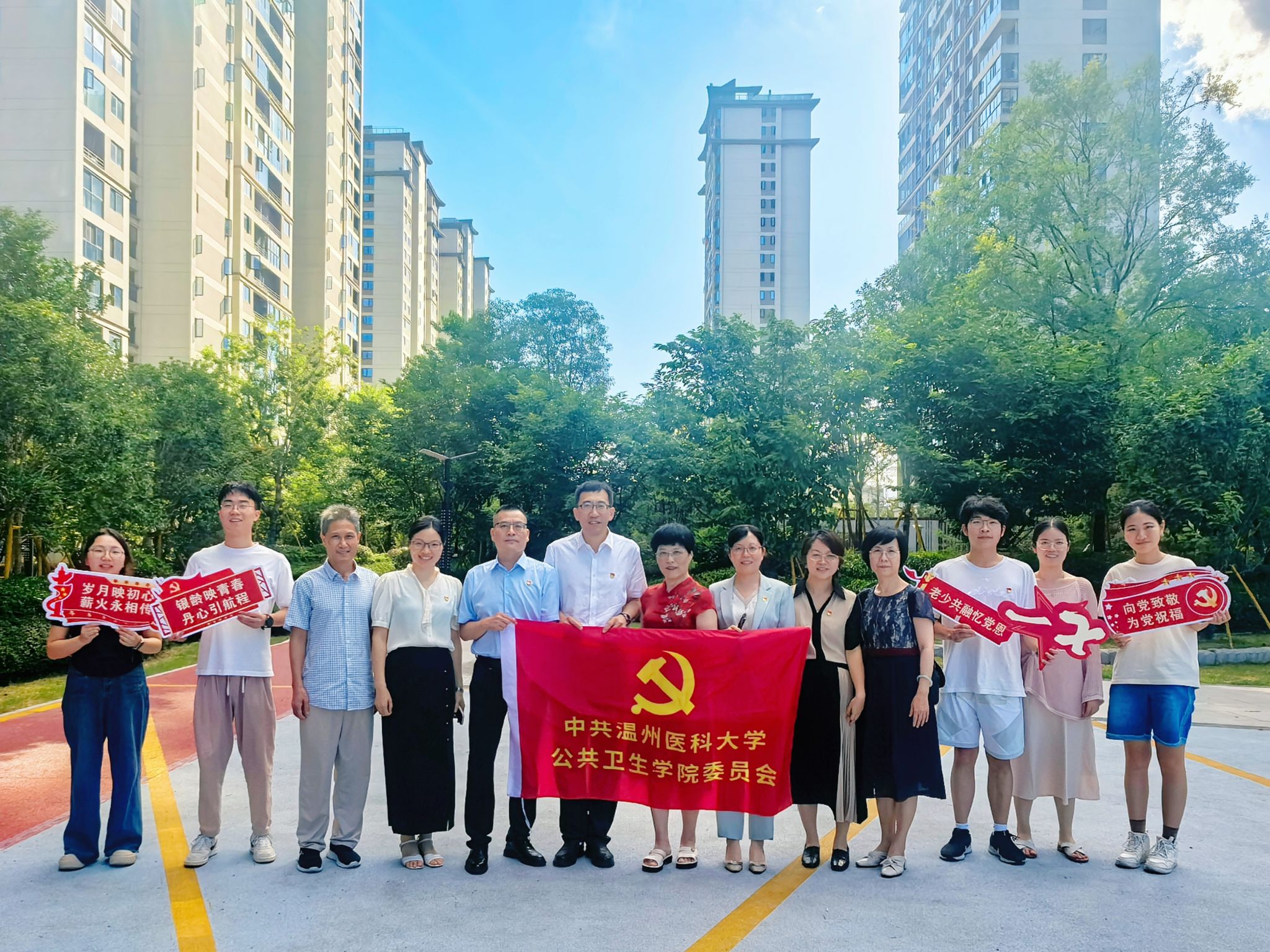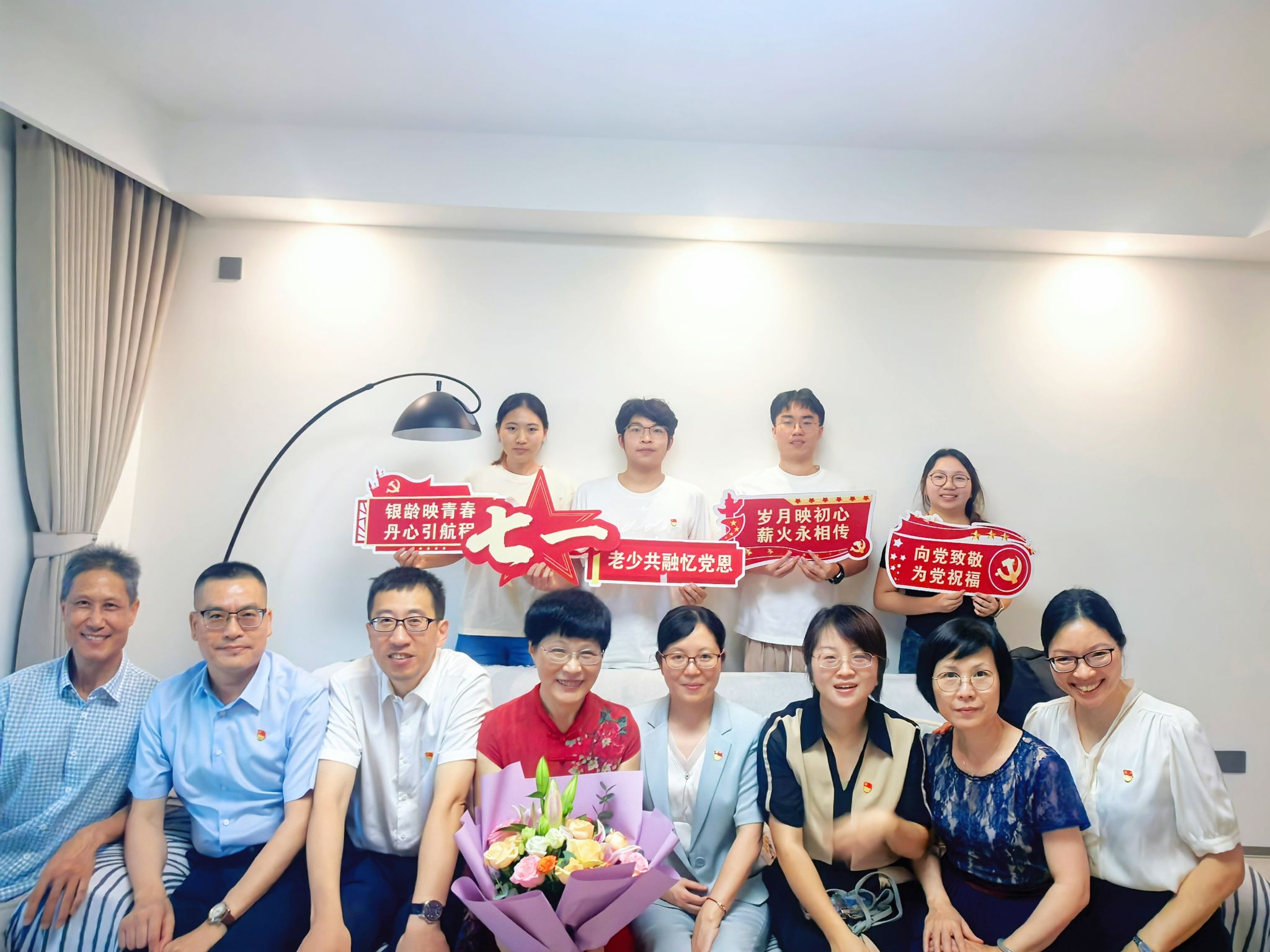 7月1日,91视频 党委组织开展了“银龄映青春 丹心引航程”庆祝建党104周年暨关心下一代工作主题活动。学院领导班子成员带领教师代表、学生代表,前往温州市优秀共产党员、原预防医学系教研室主任、预防医学系教工党支部书记叶晓蕾老师家中,向她致以节日的诚挚问候和崇高敬意,传递组织的深切关怀。