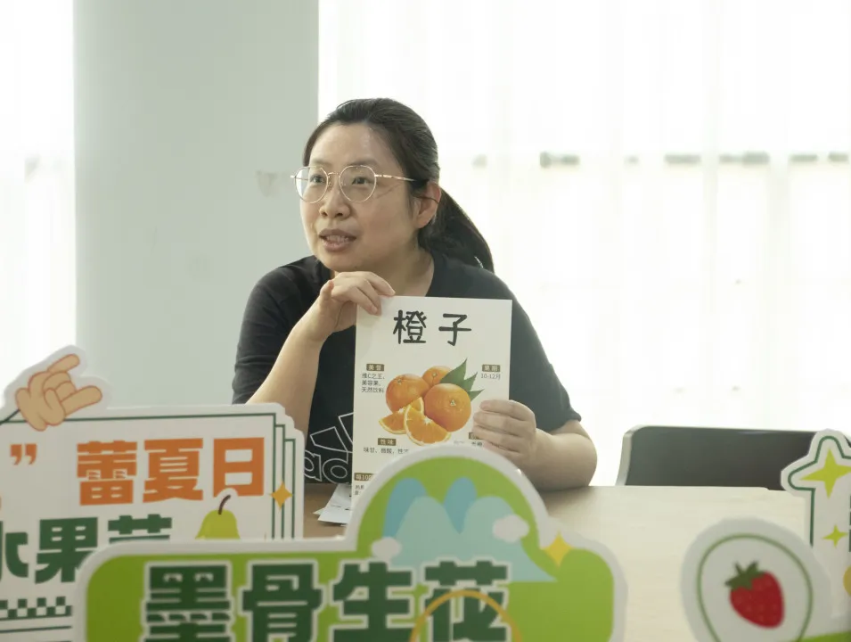 活动特设“水果营养科普”营养课堂:营养与食品卫生系教师田思聪以专业视角,为老师同学们开启时令水果的养生之门。田思聪老师先以橙子具有特殊果香引出维生素C这种抗氧化的物质,介绍维生素C能够对抗自由基损伤,促进胶原蛋白合成,有利于皮肤修复。