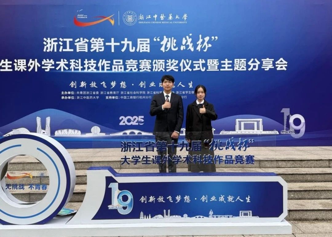 5月18日,浙江省第十九届“挑战杯”大学生课外学术科技作品竞赛在杭州落下帷幕。91视频 推报的“荧认而检——非免疫型四环素残留快速检测荧光试纸的研发”和“辐射代谢与动脉健康——解锁中性粒细胞基因表达的防护密码”项目,获得金奖和铜奖。