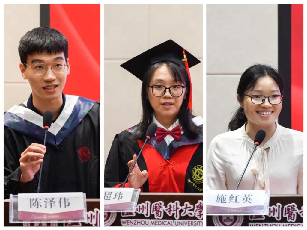 本科生代表陈泽伟学长坦言忘不了温医学习与生活的点点滴滴,温医培养他成为一个对社会有所贡献之人;研究生代表温超玮学姐道来这一路的辛勤付出和对老师们的感激之情,感谢老师教导并带领着她在学科领域上大展身手;教师代表预防医学系教授施红英老师用统计学的 “xyz”理论带给我们无限启发,她希望学子们可以尝试不同“x”的可能,也能够各自树立“y”这个目标,遵循“xyz”理论,成长为更加优秀的人。