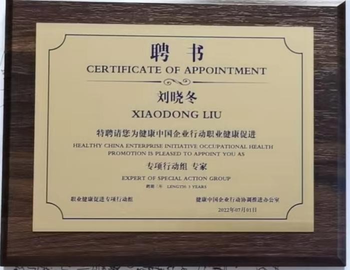会议期间,在毛群安司长的亲自关心下,成立了健康中国企业行动职业健康促进专项行动组,名誉组长由邬堂春院士担任,组长由杨磊担任,我院刘晓冬教授被聘为专项行动组专家。