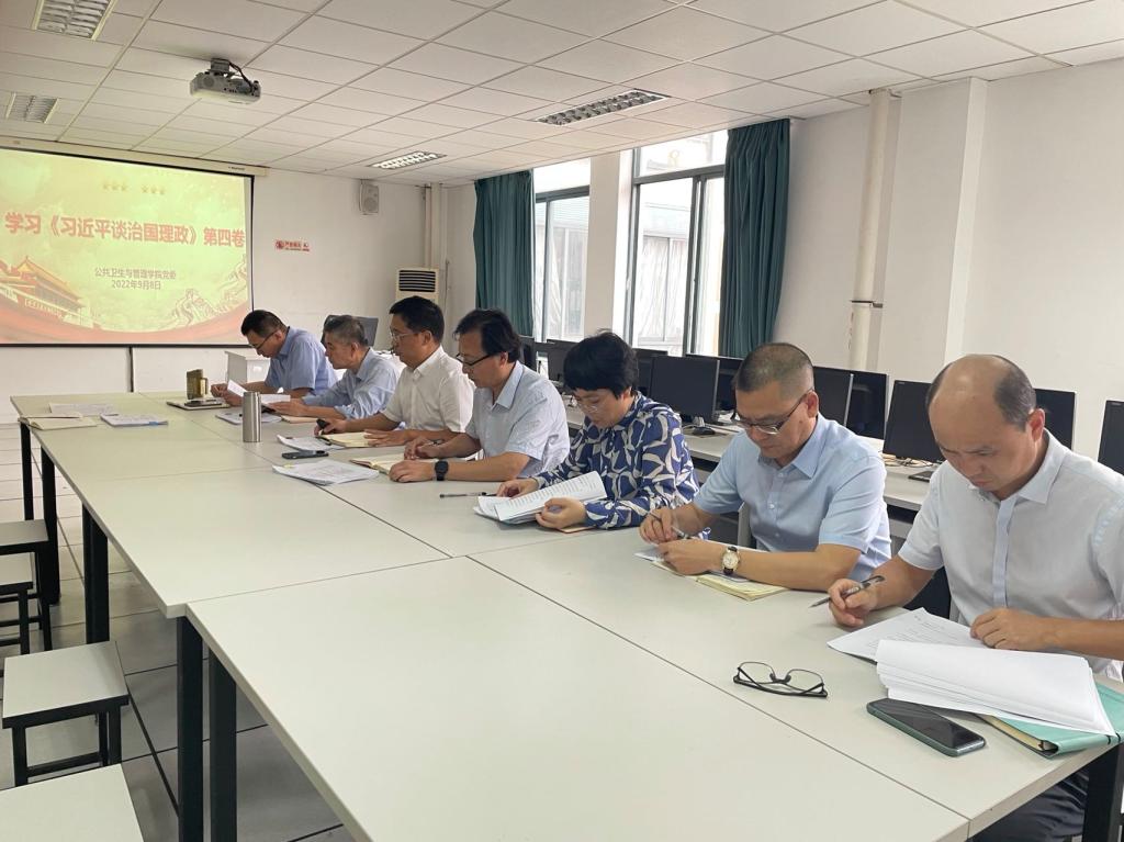 • 9月13日,公共卫生与管理学院党委理论学习中心组召开学习会,专题学习《习近平谈治国理政》第四卷。