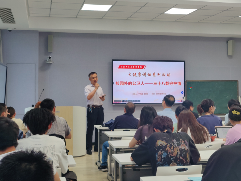 6月7日下午公共卫生与管理学院大健康讲坛系列活动在茶山校区6A204智慧教室举行。