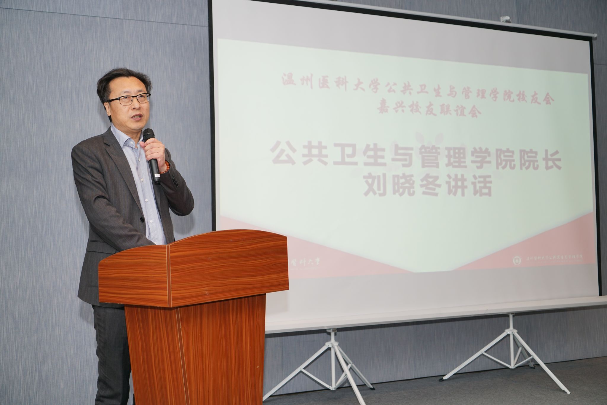 公共卫生与管理学院院长刘晓冬宣布公共卫生与管理学院校友会嘉兴校友联谊会正式成立,并为联谊会会长林叶斌授旗。现场嘉宾为联谊会会长、副会长、秘书长、理事们颁发聘书。