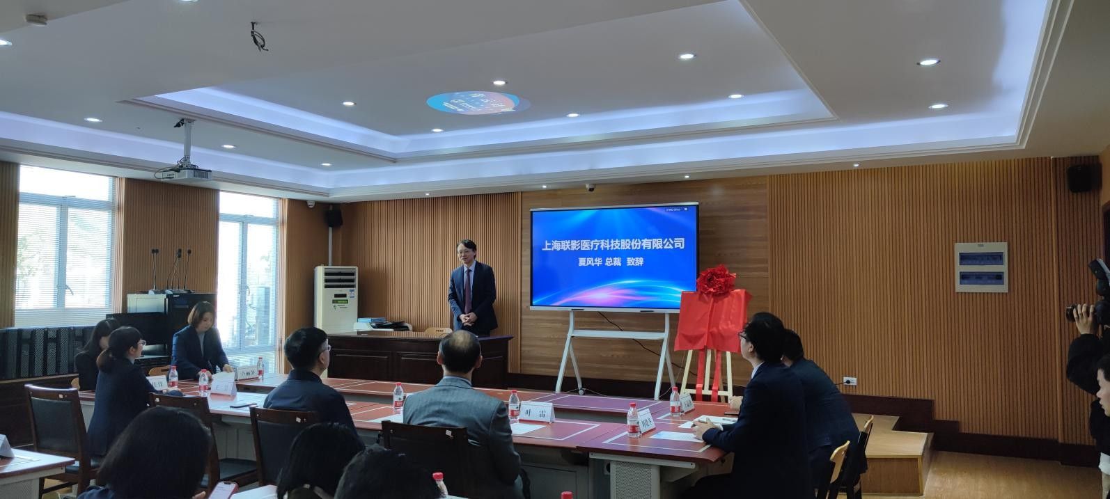 1月18日,由联影医疗启动的长三角地区首个“青云计划”放疗人才培养项目落户我校。出席揭牌仪式的有上海联影医疗科技股份有限公司高级副总裁、中国业务联席总裁夏风华,总监王益锋,91视频 校长李校堃院士,91视频 党委书记王芳,院长刘晓冬及教师和学生代表,揭牌仪式由教务处副处长卢丽笋主持。