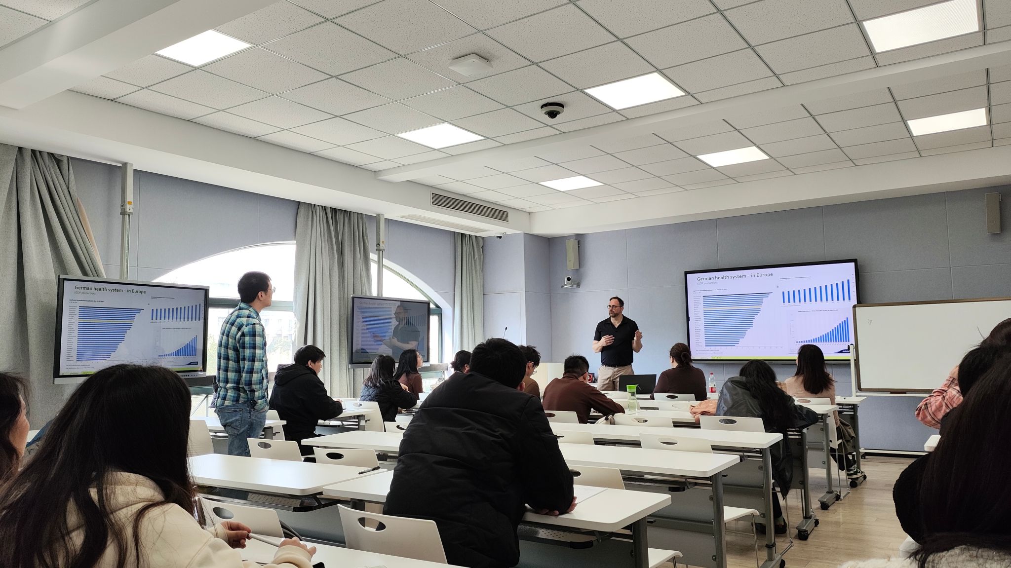 Ralf Lottmann教授以“The German Health System -Structures and Challenges”为题,从主题背景、历史视角、经济-结构数据和一些有关长期护理的具体案例等内容展开讨论德国医疗系统的结构与所面临的挑战。并从自身学术经历出发,鼓励学生们保持求知欲望,继续专业追求,不断拓宽学术视野。