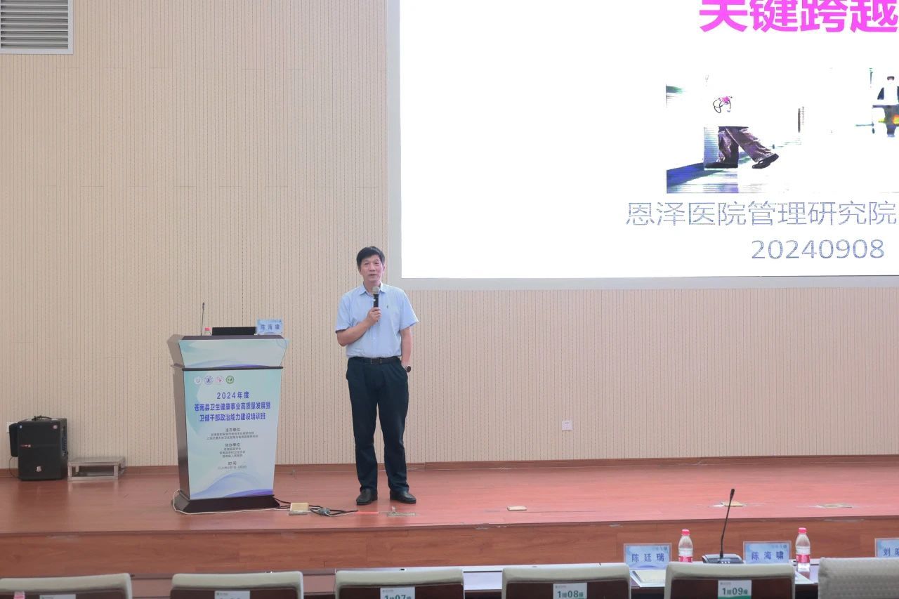台州恩泽学院院长、恩泽医院管理研究院院长、原台州恩泽医疗集团(中心)主任陈海啸作《从专家到管理者的关键跨越》主题讲课。