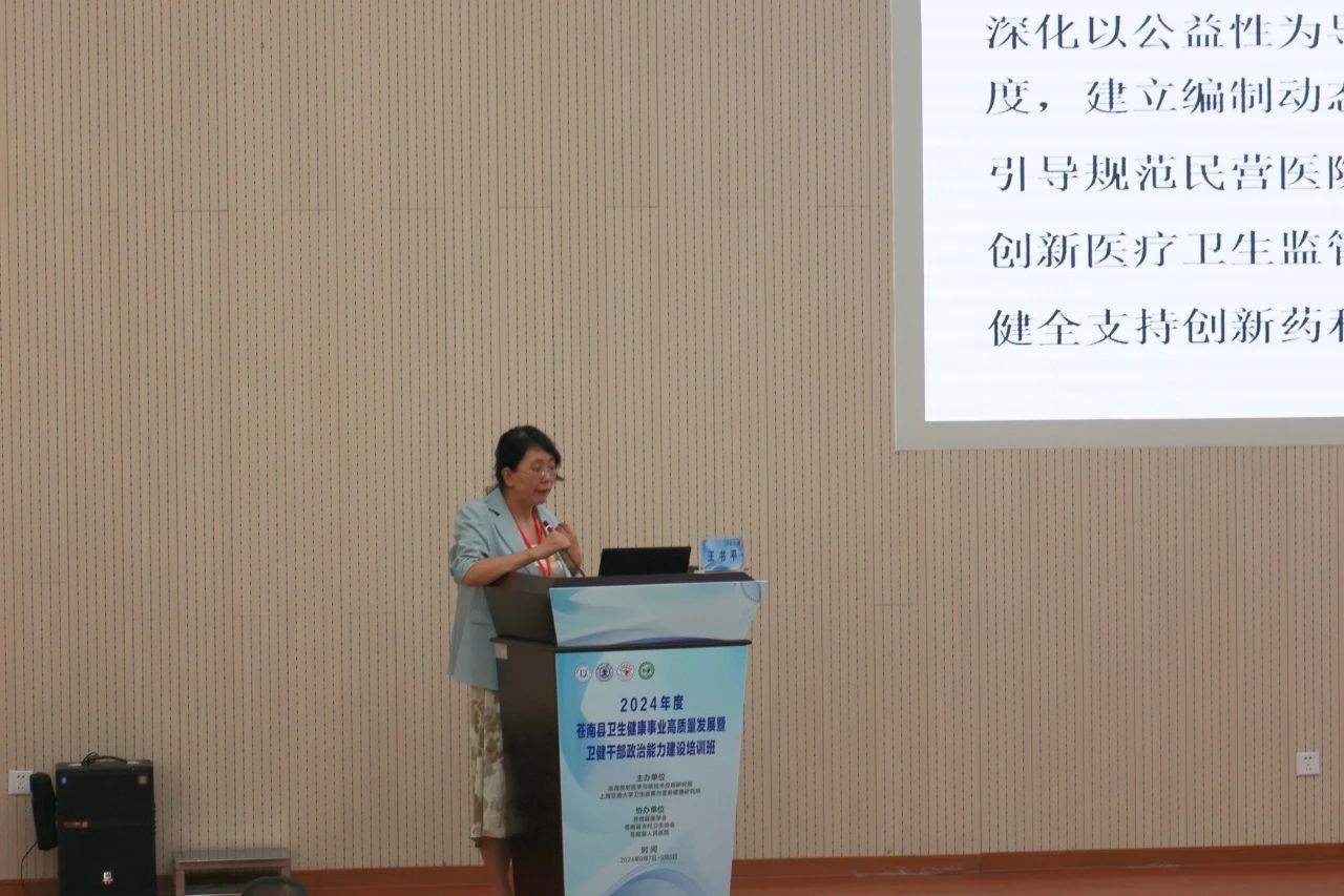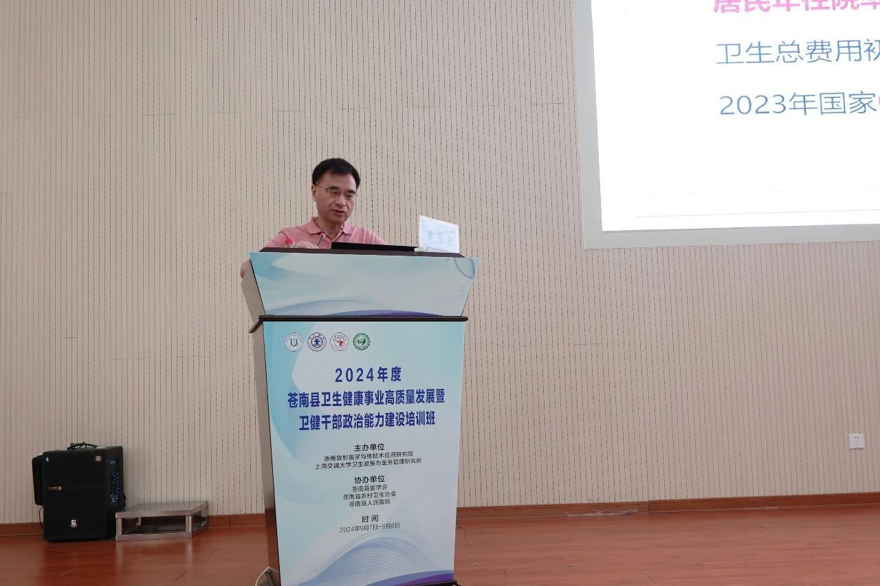 为深入开展主题教育,加强卫健系统干部政治能力建设,推进地方卫生健康事业高质量发展,持续提升公立医院现代化管理水平,推动医院从“以治病为中心”向“以健康为中心”转变,由浙南放射医学与核技术应用研究院、上海交通大学卫生政策与医务管理研究所主办,苍南县医学会、苍南县农村卫生协会、苍南县人民医院协办的“2024年度苍南县卫生健康事业高质量发展暨卫健干部政治能力建设培训班”于9月7日至9月8日在苍南县人民医院行政楼一楼学术报告厅圆满举行。