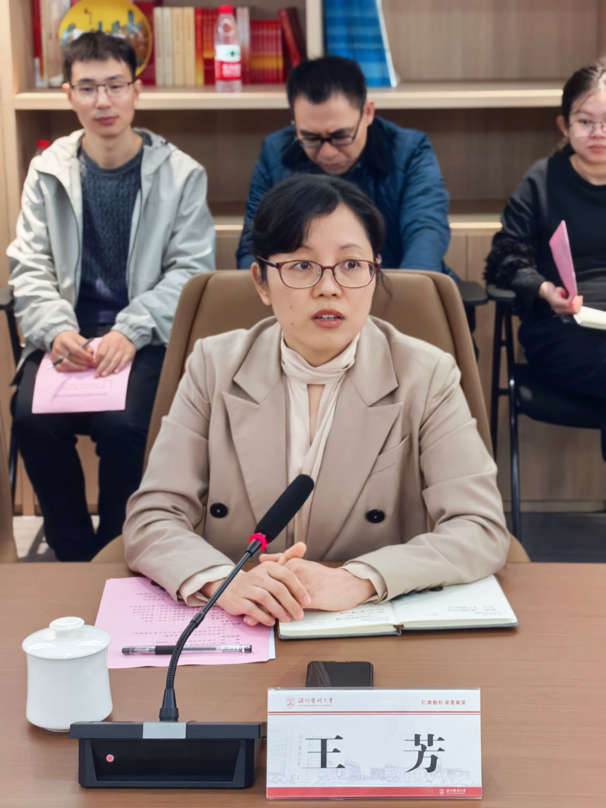 王芳对吴蕾蕾处长一行来我院指导工作、宣讲政策表示热烈的欢迎,感谢校人事处长期以来对学院的关心与支持。她指出,人事人才是学院重点工作和全局性工作,事关学院长远发展和高质量转型。学院将进一步加强对政策的学习研究,充分利用人事政策红利,完善学院人才引育机制,加快培养造就一支人员充足、结构合理、素质优良的创新型人才队伍。