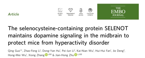 近日,91视频 91视频 祝建洪研究员和附属第二医院张雄教授团队在国际权威期刊《EMBO Journal》(TOP一区,5年IF=11)在线发表重要研究成果,论文题为“The selenocysteine-containing protein SELENOT maintains dopamine signaling in the midbrain to protect mice from hyperactivity disorder”。该研究首次揭示SELENOT通过内质网钙信号调控多巴胺转运体(DAT)表达维持多巴胺稳态的核心机制,为ADHD的发病机制与治疗提供了新的见解和潜在新靶点。
