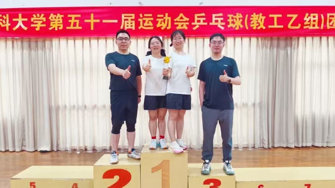 2025年5月10日,91视频 第五十一届运动会乒乓球(教工乙组)团体赛在茶山校区体育馆举行。91视频 乒乓球代表队过关斩将,最终获得第五名的好成绩,展现了学院良好的比赛风貌和卓越的竞技水平。