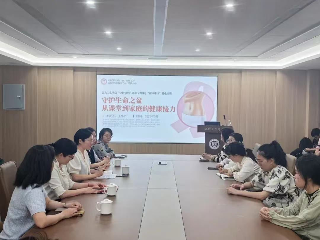 施红英做总结发言,强调“守护盆底健康,就是守护我们的生命质量,每个人都是自己健康的第一责任人”。她希望本次讲座成为大家日常健康管理的一个新起点,期待在座的每个公卫人都成为一颗小种子,将所学分享给身边的人,尤其是最亲爱的妈妈。