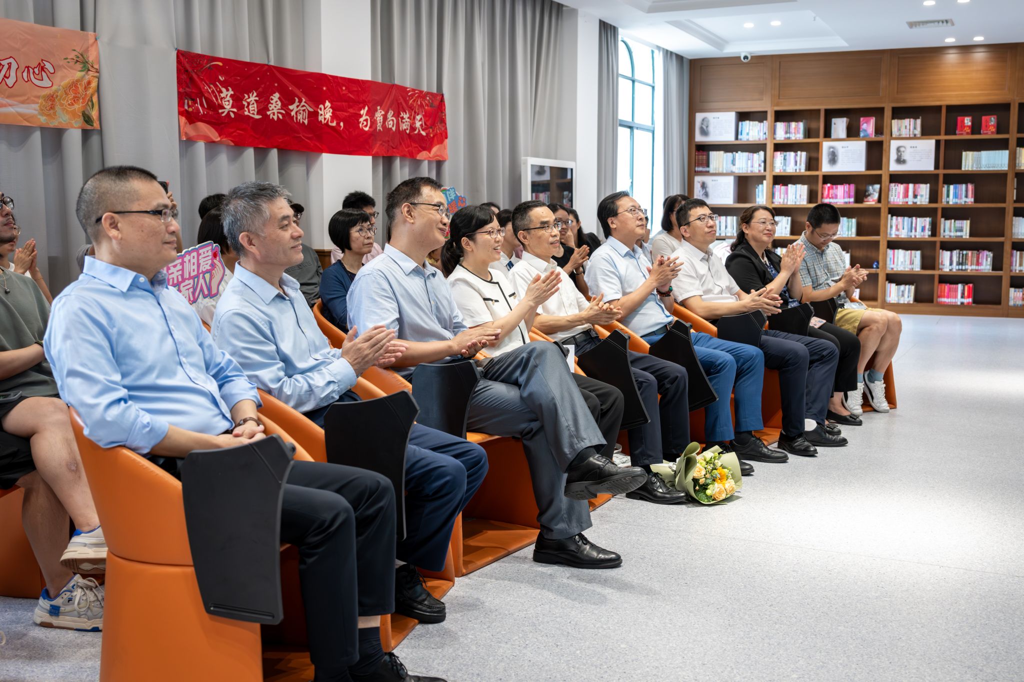 送往篇章结束,迎来篇章开启。活动之前,青年教师代表吴昊宇老师集齐了学院教工们写给黄陈平教授的纪念签名,活动现场黄教授亲自为吴老师佩戴校徽,新老教师的交接传承仪式感满满。