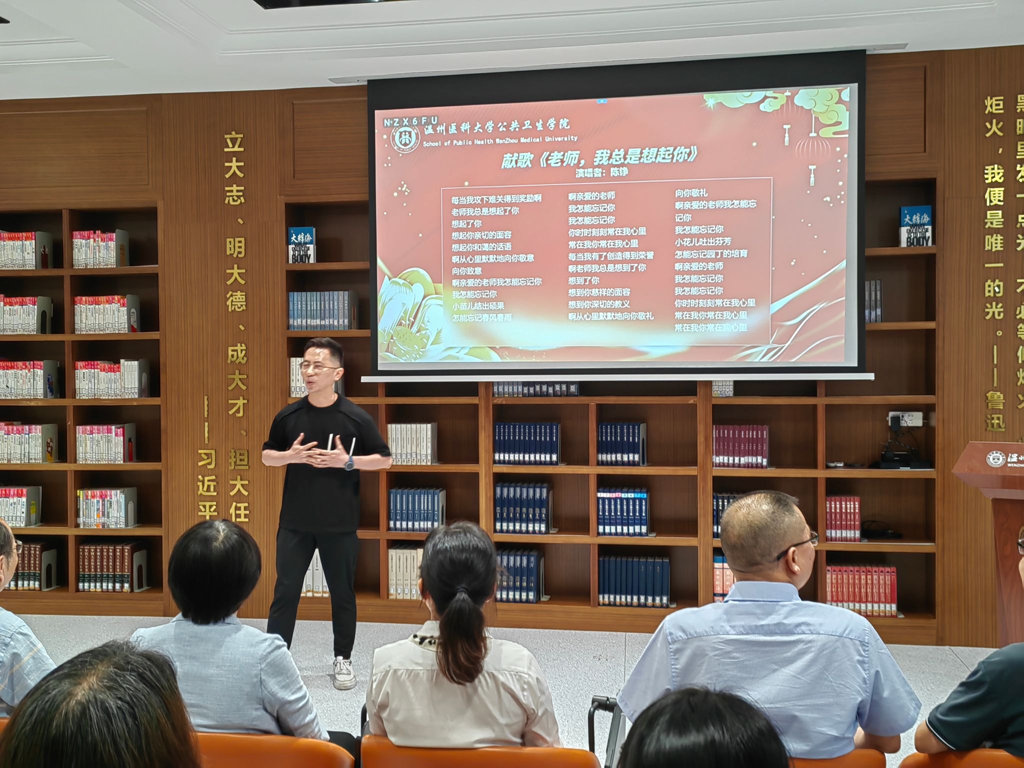 教师代表陈铮和研究生代表程彬伟、金铭敏也发挥了文艺特长,为大家带来歌曲《老师,我总是想起你》和《那些花儿》,怀旧抒情的旋律以及打动人心的歌词,引得大家阵阵掌声,一起唱和,久久感怀。