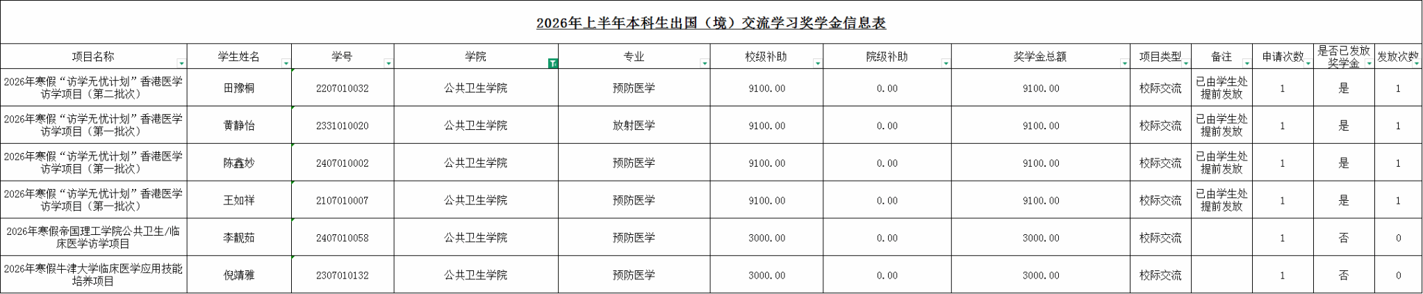 附件:91视频 2026年上半年本科生出国(境)交流学习资助拟发放名单