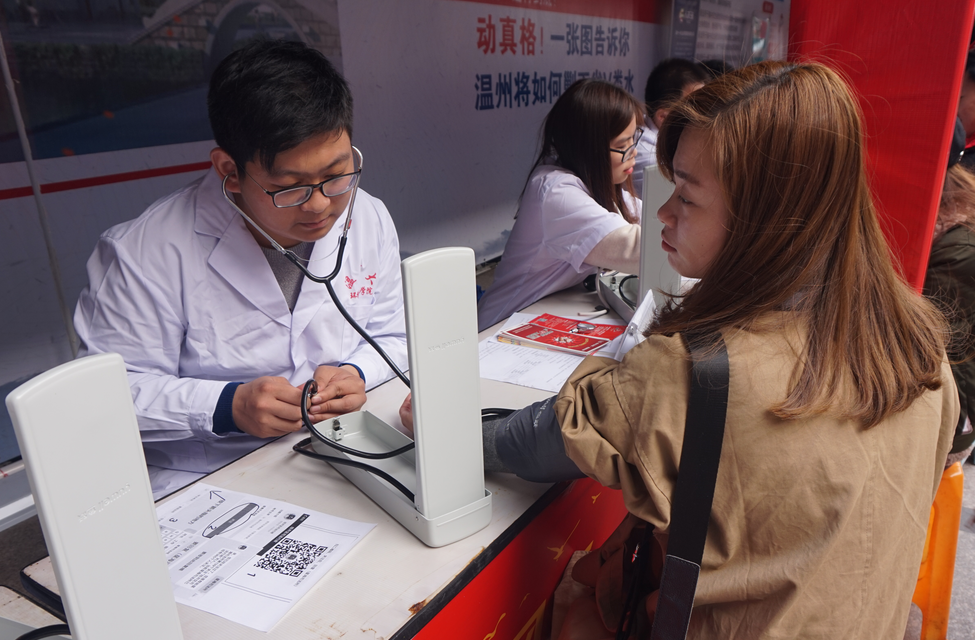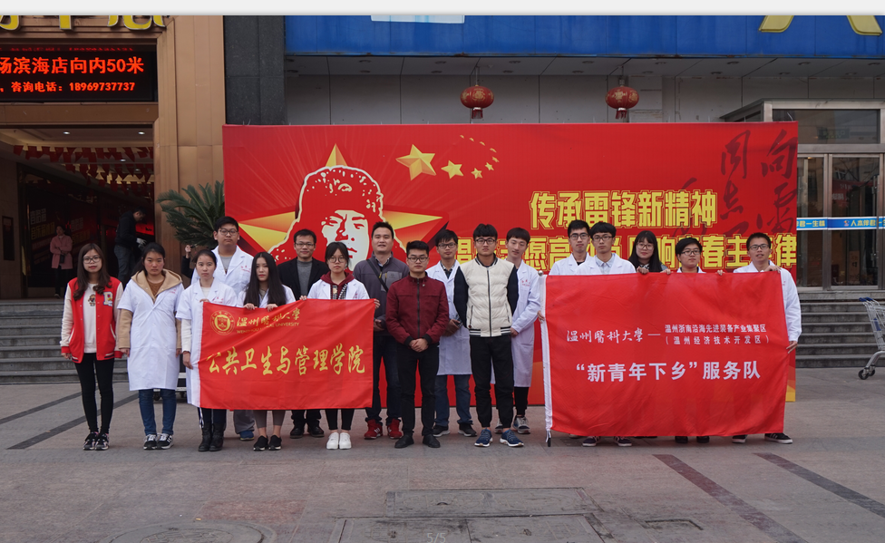 公共卫生与管理学院的“新青年们”在陈勇老师和陈瑞洋老师的带领下,于2017年3月3日下午来到温州滨海园区利玛广场开展社区义诊活动。