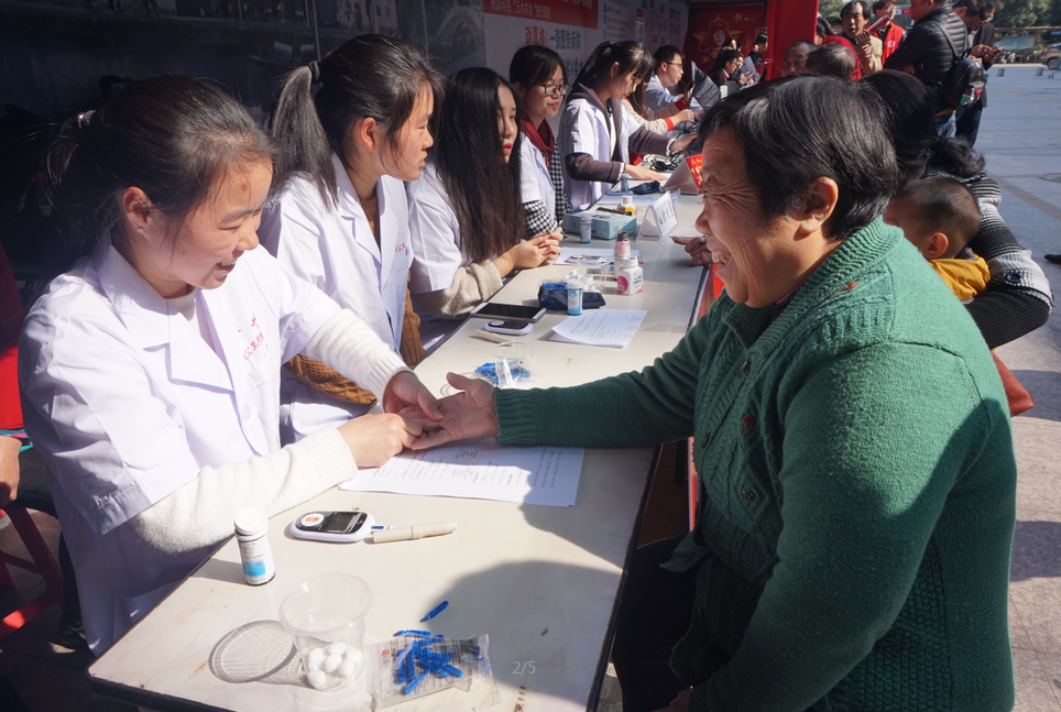 乍暖还寒时期,伴随着阵阵凉风,同学们换上白大褂,摆放好听诊器、血压仪等医用器械,在社区居委会提前搭好的帐篷内等待着居民们的到来。此次义诊共有三项服务:测量血压,测量血糖,按摩。活动开始不久,便有居民陆陆续续前来体验。“同学,你们这个服务是免费的么?”“对的,我们是来做义诊的,不收费。”同学们认真专注的为居民做检查,若测量结果与健康水平偏离,我们的“小医生们”会这样关心叮嘱居民:“请您平时一定要保持良好的饮食习惯,少吃腌制、油炸的食品,不要太劳累,注意休息。一段时间后这种情况就会改善的。”同学们不仅细心地为居民们提供服务,而且附以耐心的提醒,居民对同学们的态度也是不住称赞。