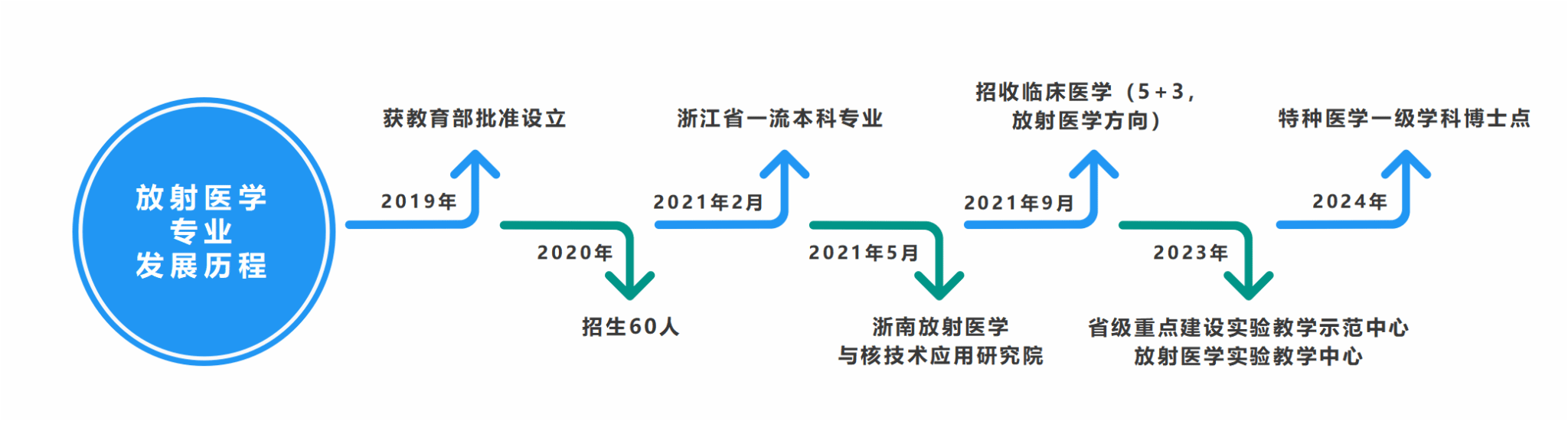 随着核技术的发展及国家“一带一路”倡议实施、浙江省秦山核电厂、三门核电厂及苍南三澳核电厂(在建)等基地建设、区域优势与学校优化布局,放射医学人才急需增加。合格的放射医学专业学生既服务国家战略需求,又能精准服务地方规划刚需,以培养适应我国医药卫生事业发展改革之需,具有良好职业道德、创新精神、实践能力和学习能力,掌握基础医学、临床医学和放射医学的基础理论知识和基本技能,能在各级医疗单位、核技术应用、教学、科研机构,尤其是综合三甲医院肿瘤放疗科从事医疗、防护、教学和管理等工作,德智体美全面发展的高素质放射医学专门人才。